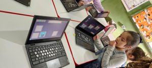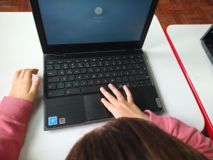 Lá no início, a novidade não era apenas o jogo, mas as ferramentas em si. Observamos que muitos alunos tinham dificuldade com o teclado e touchpad. Para eles, as letras bastão do nosso alfabeto na sala eram fáceis, mas as do teclado pareciam uma língua totalmente diferente.