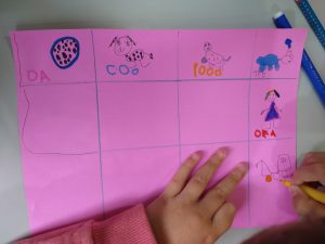 A tarefa de arrastar e soltar foi um show de lógica e percepção espacial. Super divertida, a brincadeira era organizar brinquedos em uma estante virtual, seguindo comandos como “em cima,” “embaixo” e “ao lado.” Foi uma verdadeira aventura de comandos e observação!