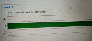 Mas a nossa aventura não ficou só na escola! Para continuar a diversão em casa, convidamos todas as famílias a acessarem a plataforma e a resolverem um Quiz Surpresa criado pela gente! O desafio é fácil e muito divertido: com perguntas como “Qual numeral rima com PRATO?”, é só escolher a resposta certa entre as opções. É um jeito delicioso de continuar aprendendo e brincando!