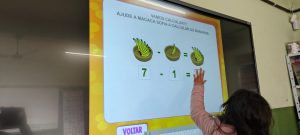 A missão continuou na página 9 de Língua Portuguesa, onde o jogo nos esperava com novos desafios. Tivemos que nos tornar detetives de palavras: lendo, fazendo rimas, desembaralhando sílabas e associando desenhos a palavras. E para provar que a Macaca Sofia é super esperta, o jogo nos desafiou com contagem, adição, subtração e até divisão de bananas! Foi uma verdadeira aula de matemática disfarçada de brincadeira!