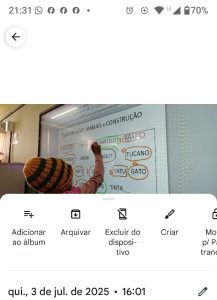 Nesta semana, a turma do 1º ano se tornou construtora de palavras com o jogo “Casa de Palavra” (Língua Portuguesa – Página 1) da Clickideia! Usamos a metáfora de que “cada palavra é uma casa e as sílabas são os tijolinhos” para mergulhar fundo na consciência silábica e na formação de palavras.