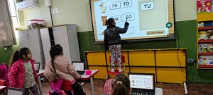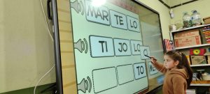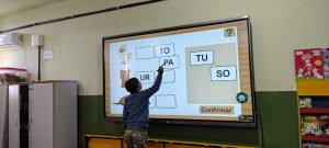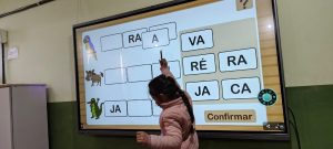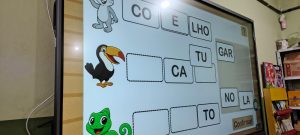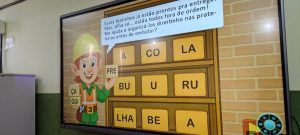 O jogo é um verdadeiro canteiro de obras da leitura: as crianças organizaram e arrastaram sílabas, completaram as que faltavam e até substituíram números por sílabas em frases.