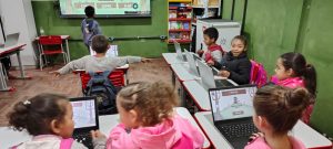 Transformamos a sala de aula em um cenário de mistério e descoberta com o jogo “Expedição de Palavras”. A ferramenta é envolvente e desafia as crianças a associarem palavras com figuras, identificando a sílaba inicial. A dinâmica é fantástica: em uma página escura, os alunos usam uma lanterna virtual para encontrar e clicar na imagem correta que corresponde à palavra-chave. O sistema de emblemas, que eles conquistam a cada fase, se mostrou um grande motivador para o engajamento e a persistência.