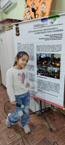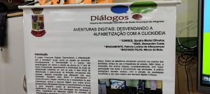 A aluna Nicolly, que representou a turma na Mostra de diálogos (    ) , foi a grande porta-voz do evento. Com desenvoltura, ela apresentou o banner, explicou como foi sua participação e o que o Clickideia significou para ela.