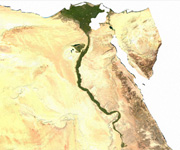 O sucesso dos egípcios no desenvolvimento da agricultura começou a resultar num aumento da produção de alimentos. Assim, por volta do ano 3500 a.C., as outrora pequenas comunidades formadas ao longo do Nilo foram se concentrando em dois Estados relativamente afastados entre si. Conforme você pode observar no mapa ao lado, em torno do Nilo há basicamente duas regiões. Mais ao sul, fica o chamado “Vale”, que percorre uma longa extensão de terras desérticas, e que são conhecidas como “Alto Egito”. Ao Norte, encontra-se a área do Delta (com a forma de um triângulo), onde o Nilo deságua por uma série de canais no mar Mediterrâneo. Essa região é chamada de “Baixo Egito”. Baixo Egito e Alto Egito foram dois reinos independentes até por volta do ano 3100 a.C., quando o imperador Menés (também chamado de “Narmer”), governante do reino do Alto Egito, derrotou as forças do Baixo Egito e unificou os dois reinos. Nascia, assim, o Império Egípcio.